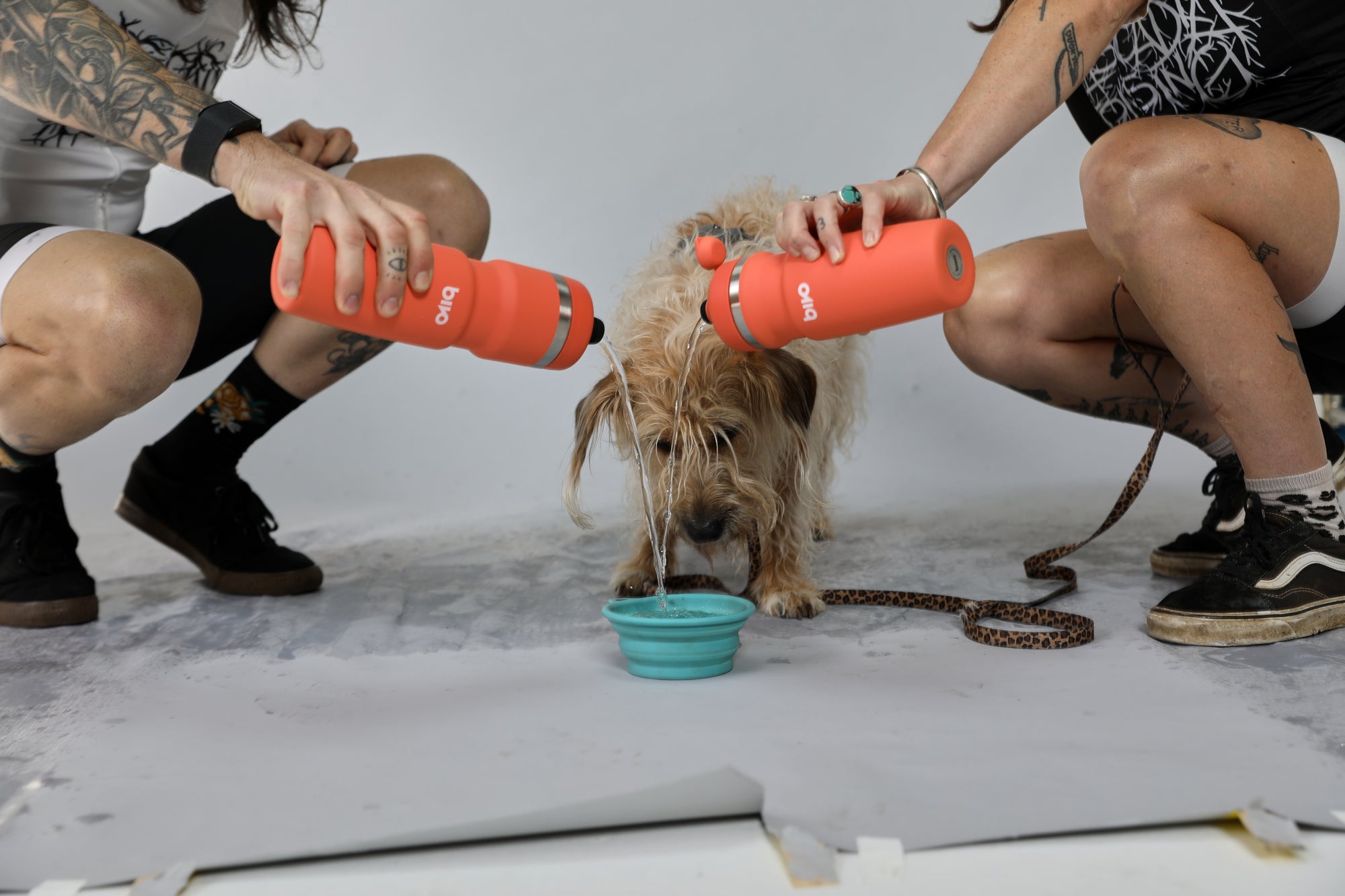 You can easily share the contents of the bottle, either by pouring into another vessel or right into a mouth (human or dog!)