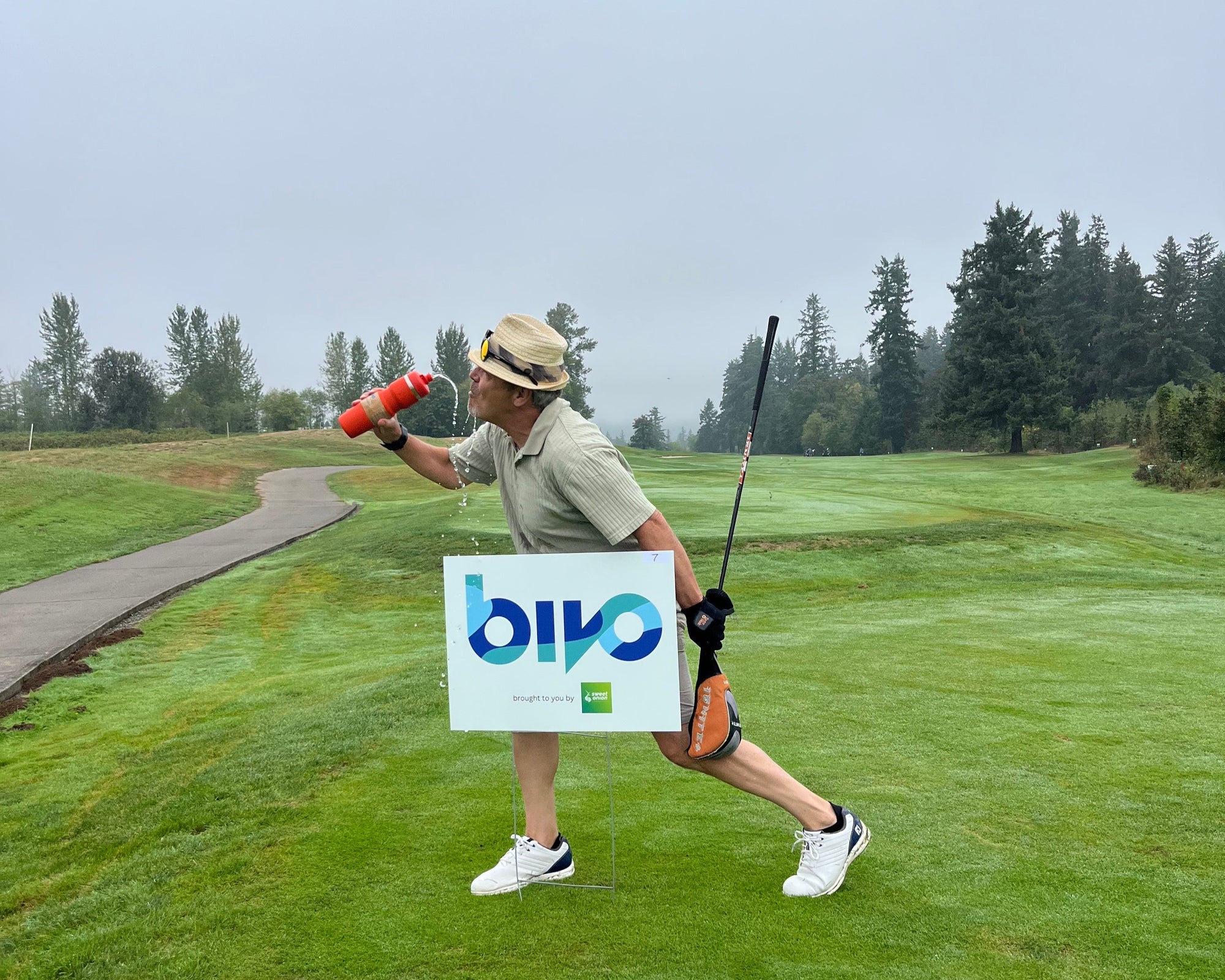 Pictured above: Bivo team member Rob Langstaff and our ambassador Annie Davis! We promise, drinking out of a Bivo typically doesn't cause this much spilling!