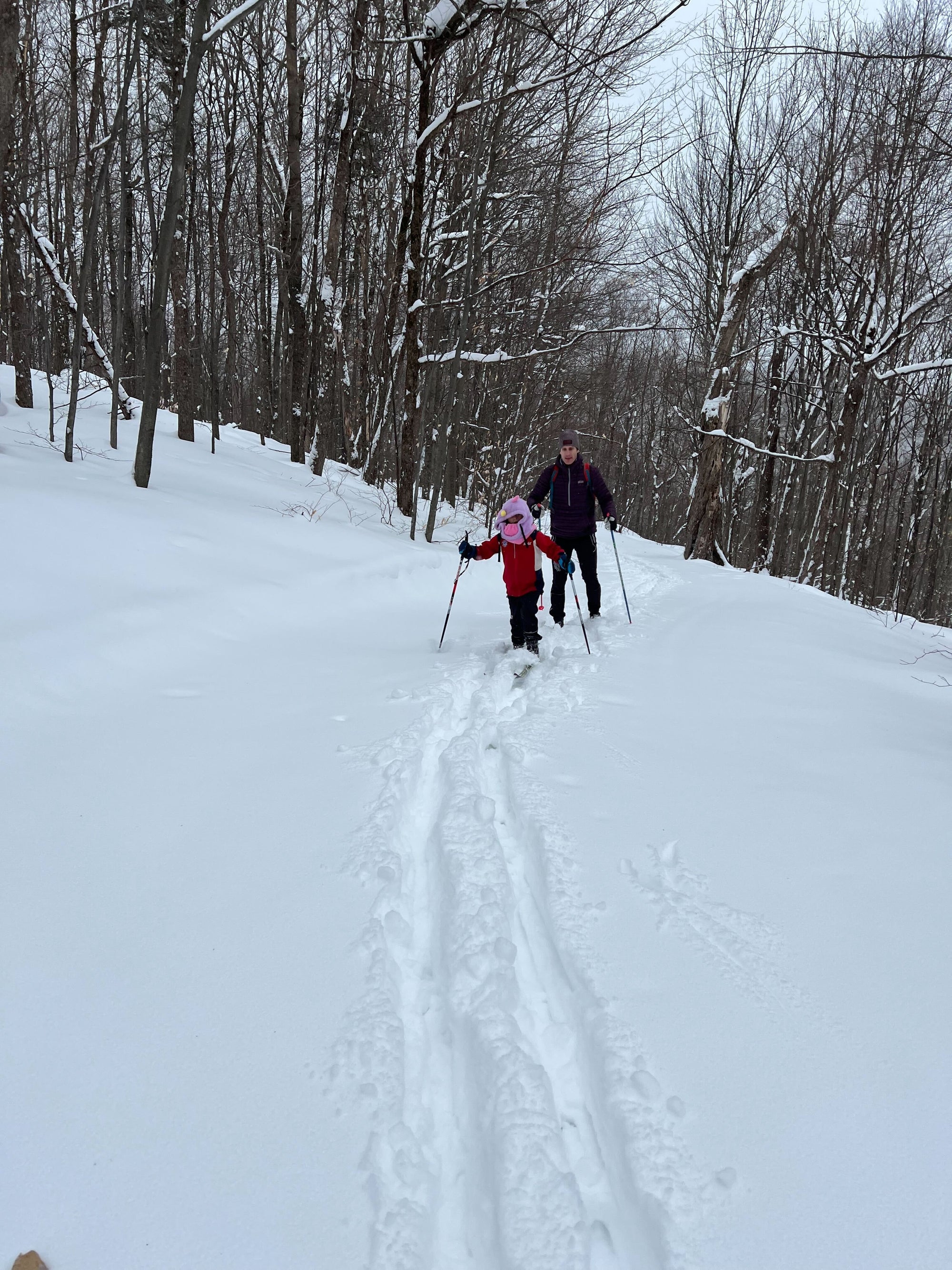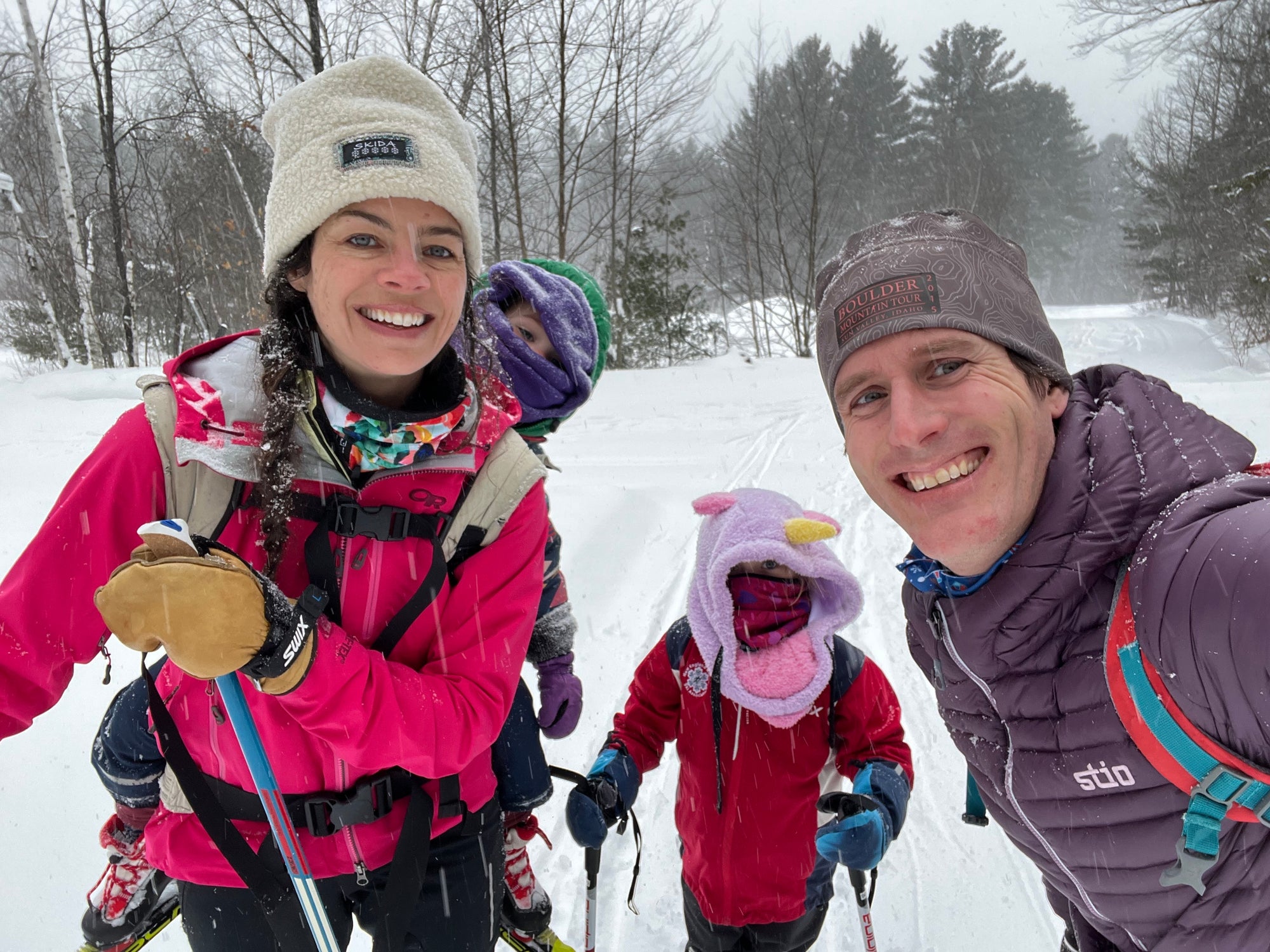 My childhood was filled with days like this. Full days out with a whole bunch of kids cross country skiing, only to come in for some quick snacks before heading back out to play on the snow mounds and race down hills. We skied down the back side of Wild Cat Mountain in NH, breaking skis and losing poles in the powder (pictured in the heading image is Carina and her friend Amber on this Wild Cat ski). I just remember smiling and thinking it was so cool to be out with my friends. Sure, I raced, but my big memories from sport growing up aren’t from my race days. They were from my adventures.