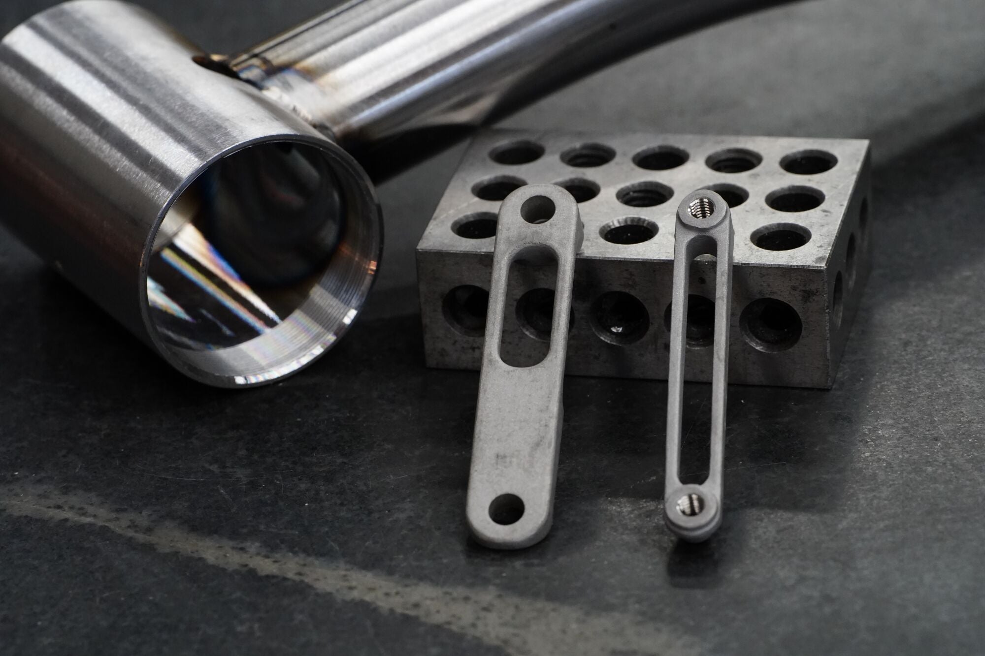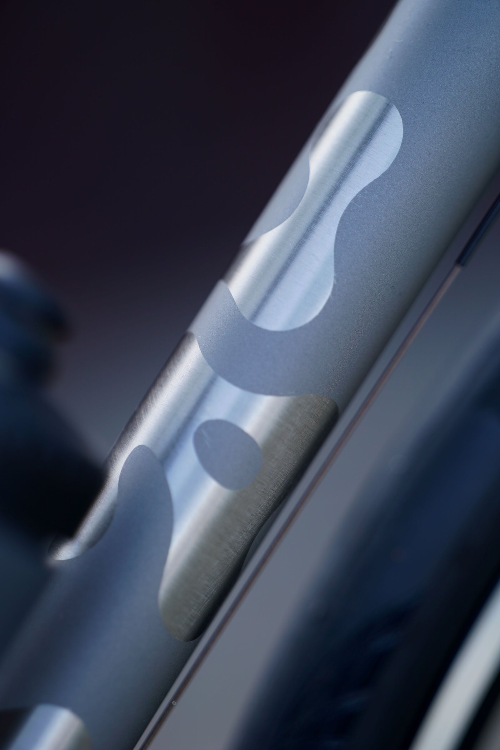 Finding a solution to the two water bottle dilemma was the very first thing I did as a framebuilder. My technical background is in 3D printing, which allows you to think outside the box of traditional manufacturing techniques. By using a 3D-printed stainless steel bracket, we can angle the water bottle mount out of the frame, allowing for an additional 60mm of insertion depth. A tiny detail, but every millimeter matters when I am trying to maximize hydration space! This simple part allows us to put two bottles in the main triangle on all sizes without compromising dropper insertion.