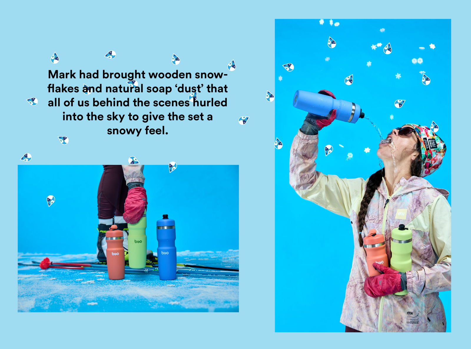 I really should have brought another change of clothes…is what I was thinking on a warm, muggy day out in Portland, Oregon. I was at the set of Bivo’s Holiday color photoshoot. We were in a well-lit room, we had plenty of coffee to go around, and I had just dumped a full Bivo over my head for the 10th time, as the camera clicked away, capturing the iconic flow.