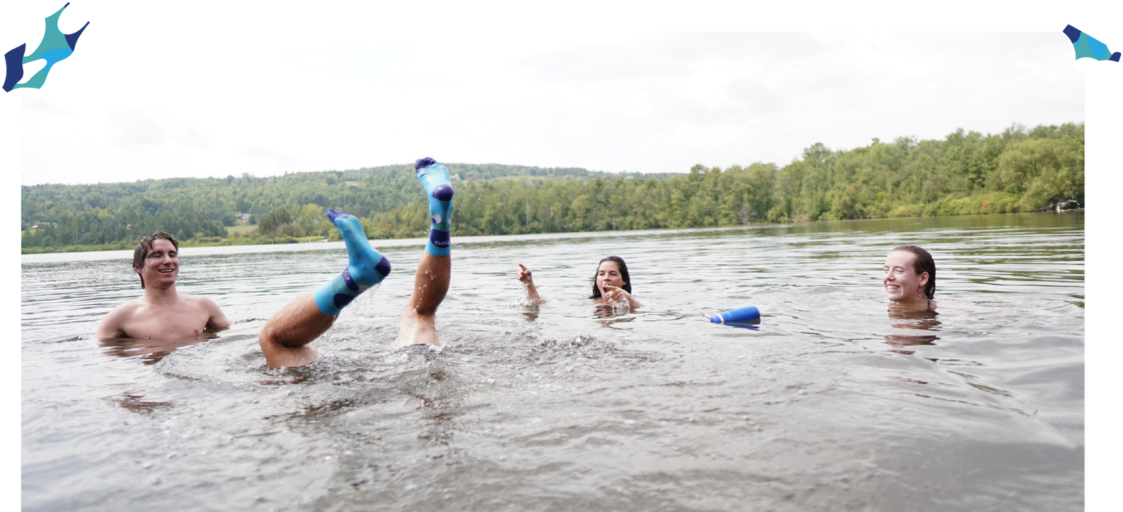 Back in Vermont a totally different yet equally wet photoshoot was happening with everyone back home. We all grabbed our swimsuits, piled into a car, grabbed lunch at the local bakery, and headed to lake Iroquois with our new Bivo socks and the new holiday colors in tow.