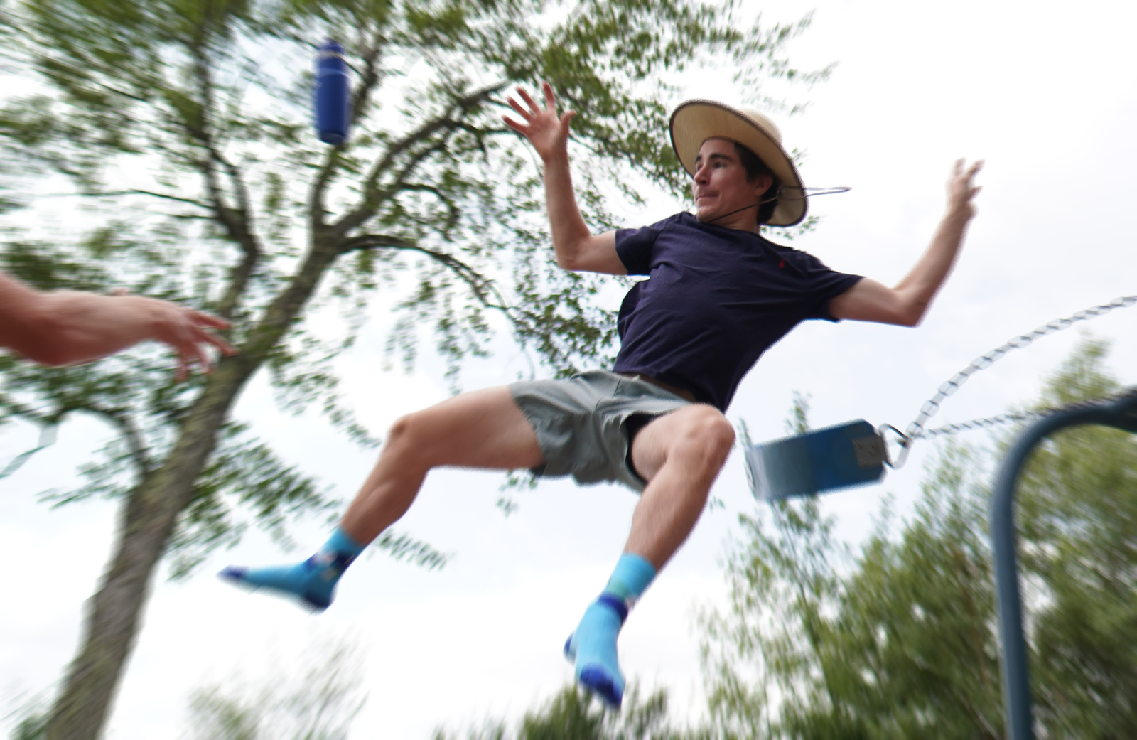 Our first stop at the lake was the playground, of course. After a few rounds on the swings, we were putting Sam’s hand eye coordination to the test, seeing if he could catch a bottle while flying through the air. It took a few ungraceful landings on the woodchips, but on the third jump, he landed on his feet with a bottle in hand.