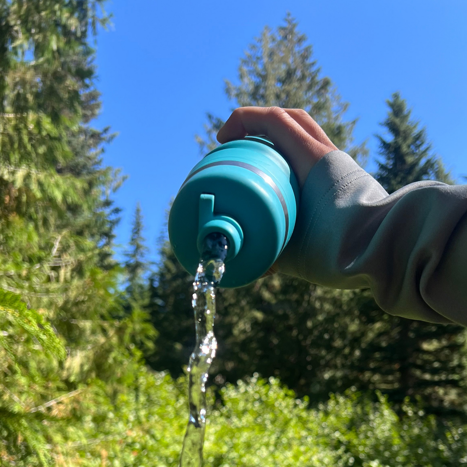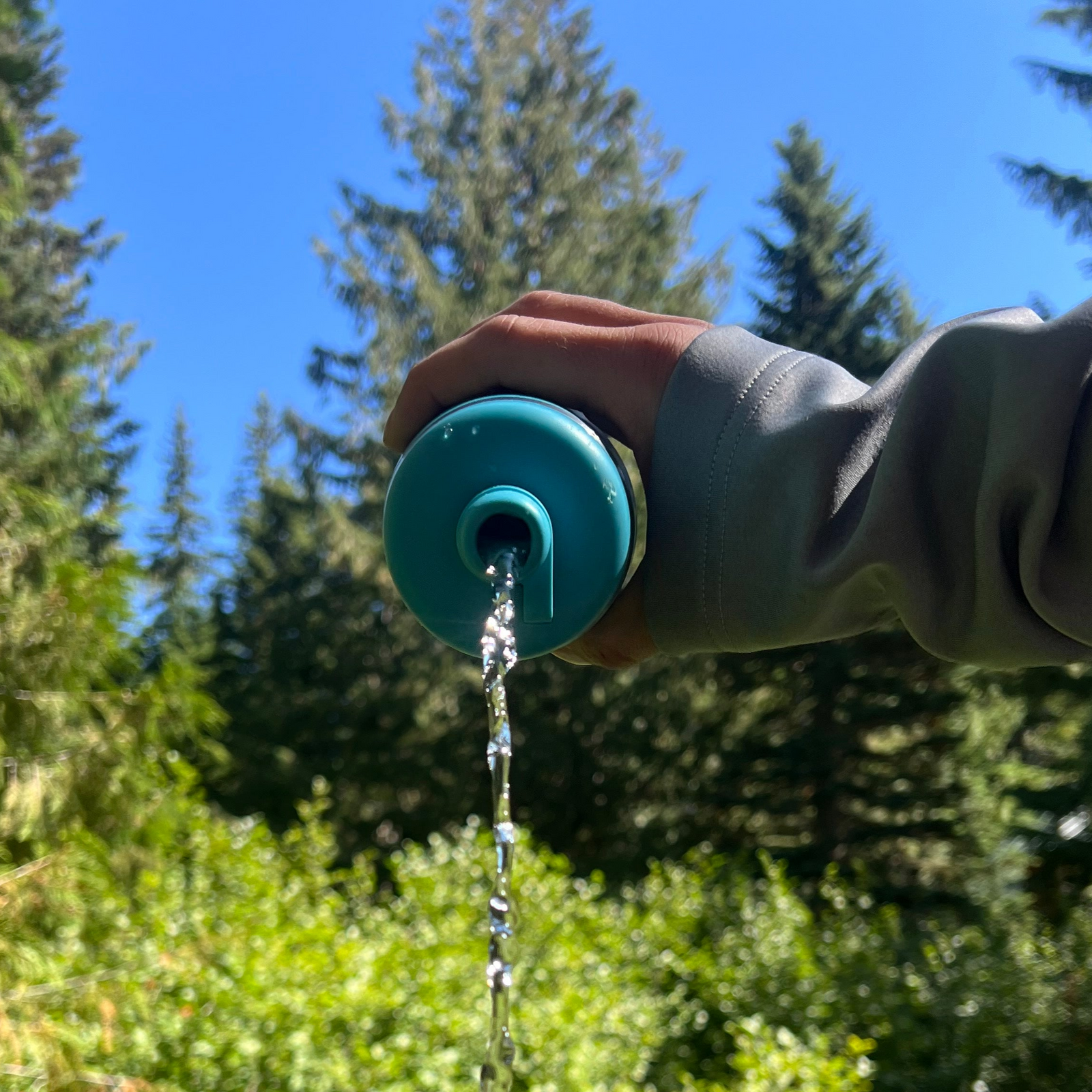 Since we can’t squeeze a metal bottle, when designing Bivo, we had to figure out how to make water pour out quickly. Enter: our patented(!) Gravity Flow system that vents air in to allow water to pour out as fast as it does.