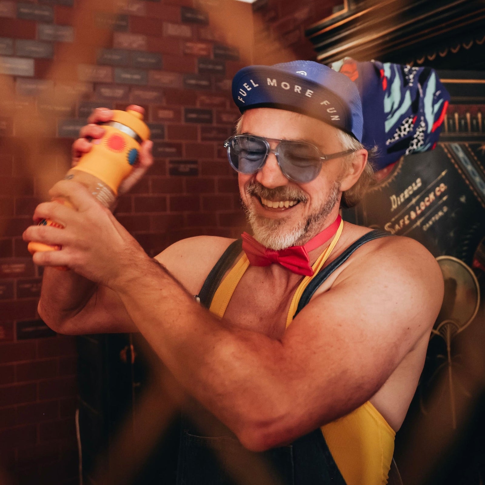 Being a Bivo bartender one night at the Momentum art show over the weekend of Rebecca’s Private Idaho. Mark seriously loves a ludicrous outfit so he was thrilled to dress up and mix up cocktails in Bivos for all the attendees of the art show.