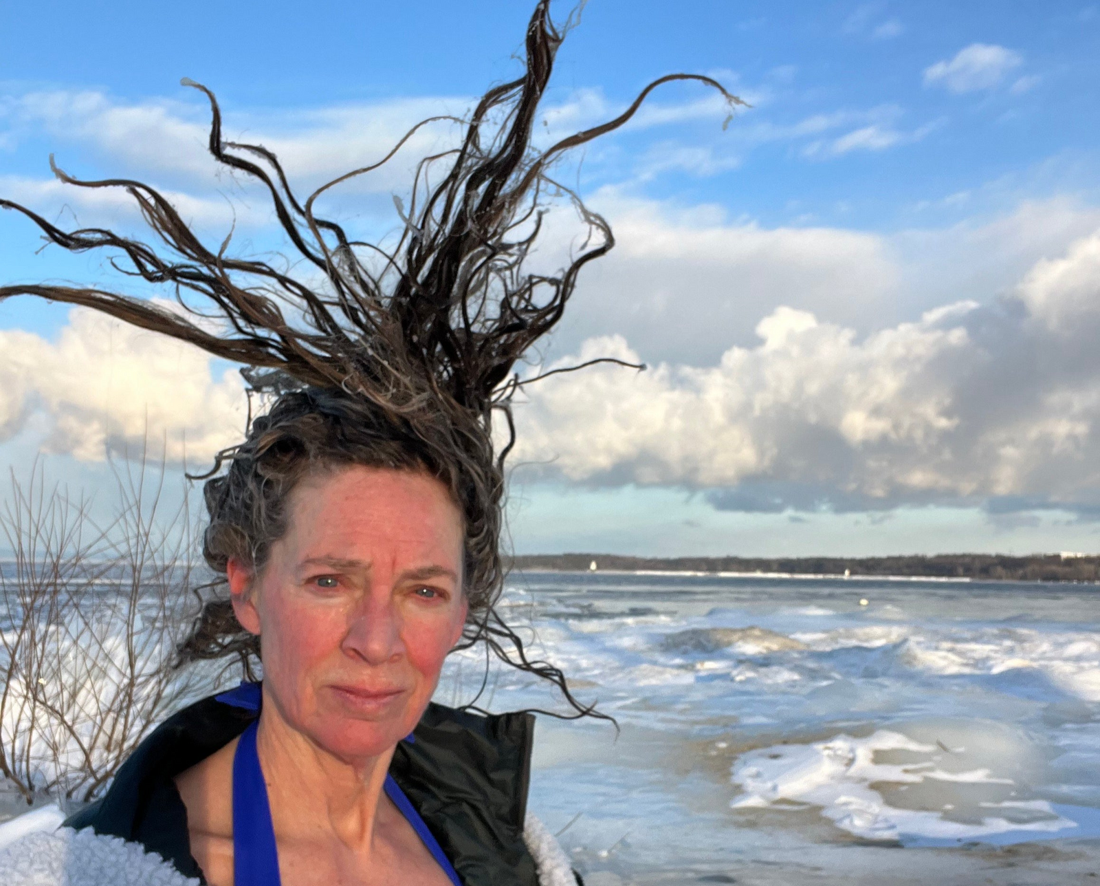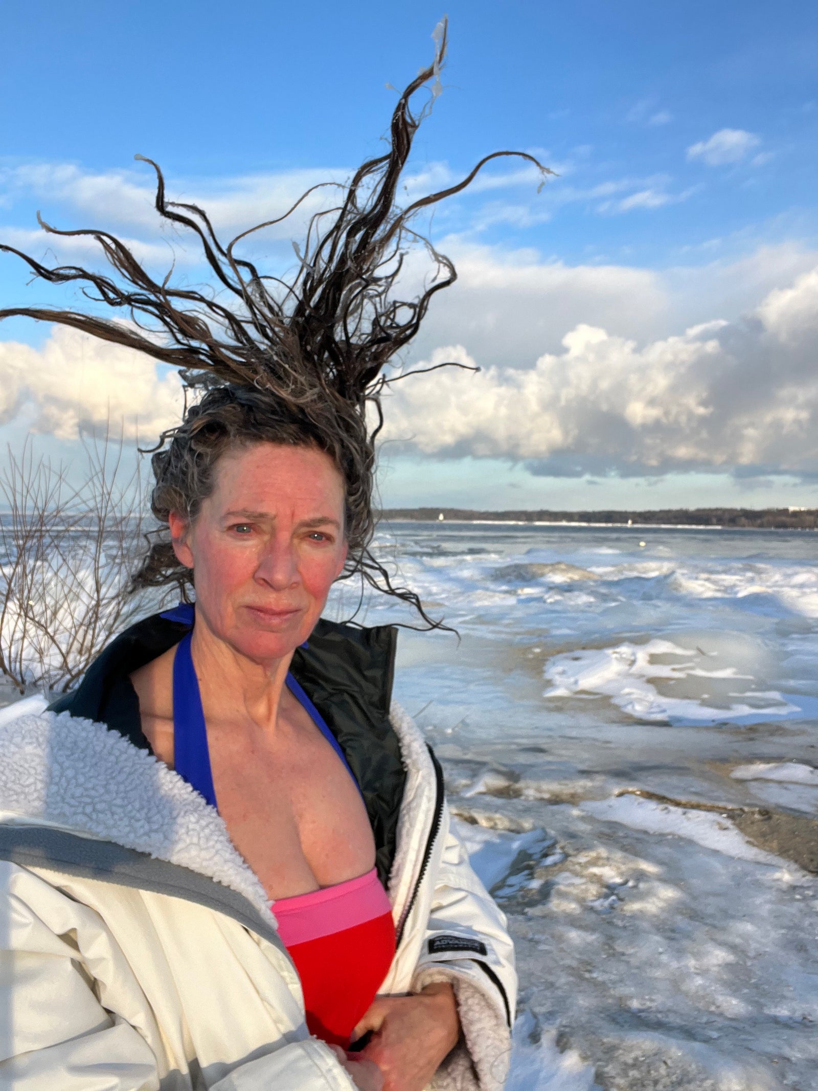 There was this ethereal lightness in the atmosphere, a few inches of snow lay on the ground, snowflakes fell slowly in the stillness, and a gauzy filter enveloped the landscape. After months of excuses to avoid getting in the cold lake, this was it. I was actually going to do it. I was so inspired by my friend’s resilience, this was the day I would slay this dragon. Elise wore me down, and I was happy for it. We stood at the lakeshore, cold and excited…and then we marched in like penguins, diving down, popping up and quickly out. Big smiles, and, to my surprise, I had survived. Somehow I imagined that my heart might stop, but it did not.