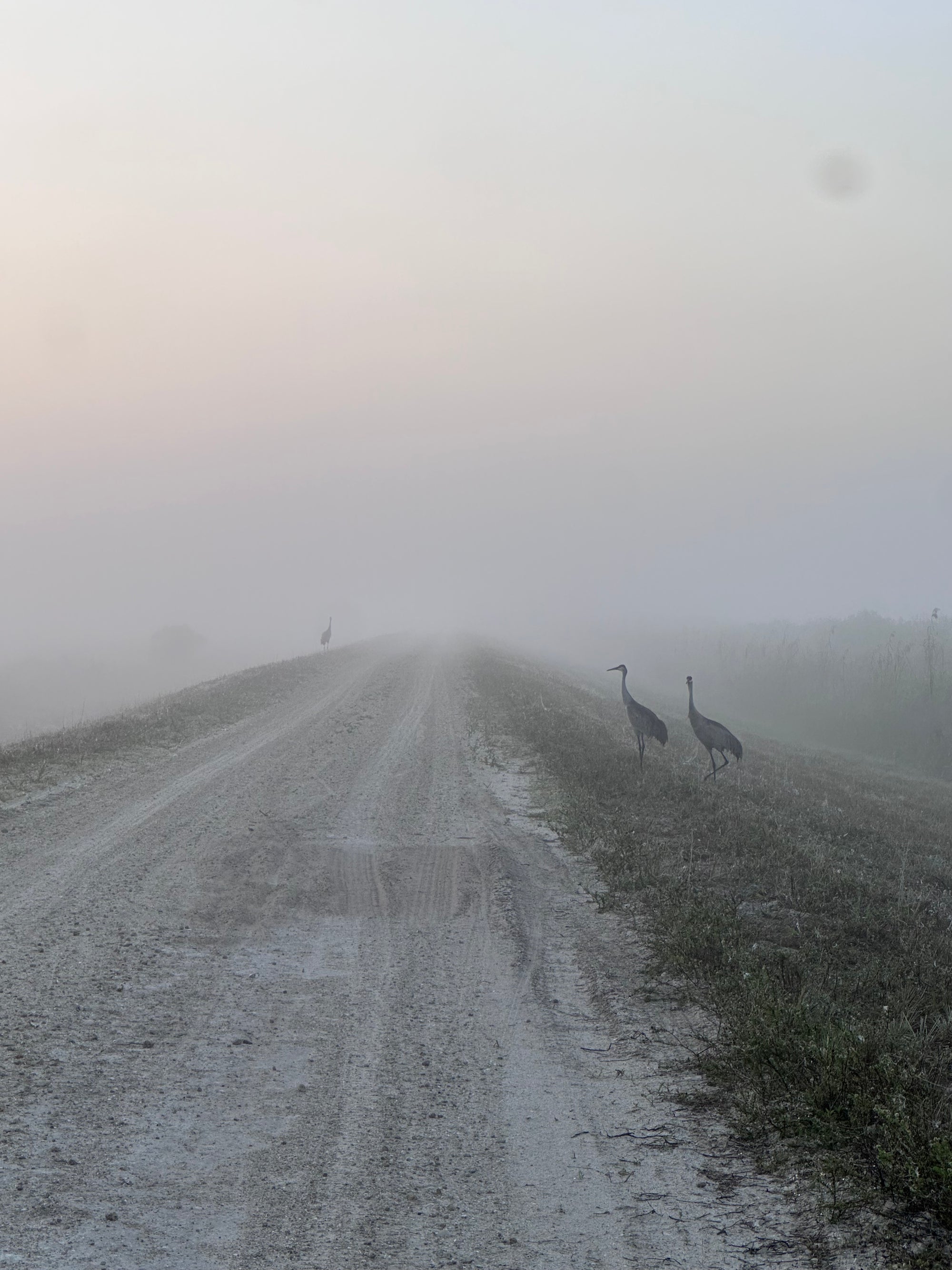 I’d been dying to see the sandhill cranes up close. It was my last day in Florida and nothing yet. I woke up at 5:45 am and was on the bike at 6:17. My legs were a little sore from 6 days of nonstop riding, with unforgiving headwinds in the blazing sun.