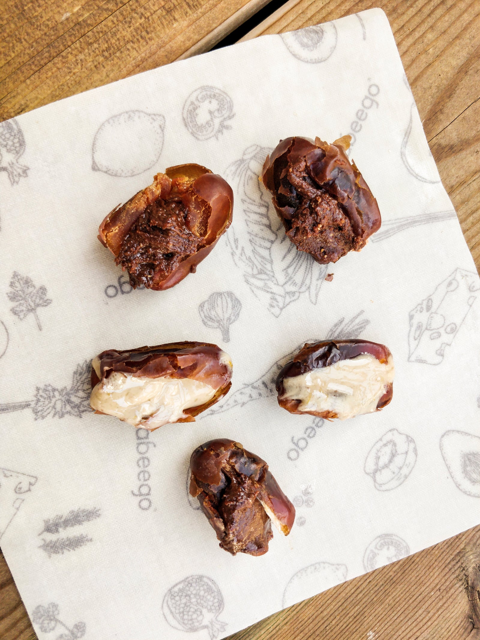 Full of natural sugar, dates are already an excellent ride fuel. Stuffing them with a creamy filling takes them to the next level. Truly crave-worthy fuel. Soft Medjool dates provide a bigger blast of carb energy and are easier to stuff, but less expensive Deglet Noor dates are a good option here, too. You may have some extra filling that can be used to stuff more dates. These are best transported in a small zip-top bag.