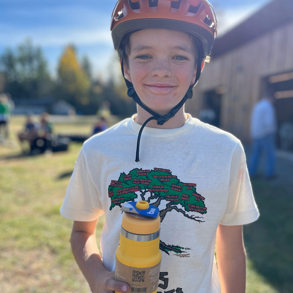 Oz, currently a junior at Mt Abe high school in Bristol, VT, has been riding with our team since its inception. Since then, Oz has championed our local pump track, skate park, and single track trails with his own enthusiasm for riding as well as a keen knack for design and fundraising to boot! His perpetual energy is contagious to peers and adults on our team, and we see it rubbing off on all those around him. He can be witnessed doing wheelies through xc race sections where adoring fans are watching, preferring to keep the attention on joy even while displaying incredible grit in the top race categories. He volunteers his time toward community endeavors that support youth on wheels and may even be spotted pushing an outhouse on wheels in our annual 4th of July competition!