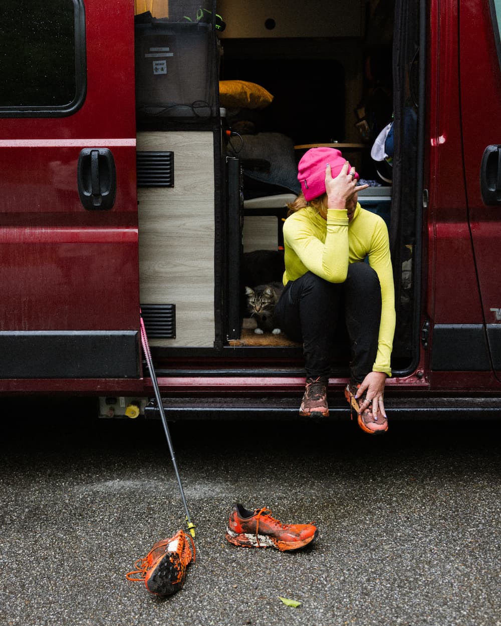 Living in a van means waking up to mountain lion footprints in the sand, coffee by alpine lakes, and wildflowers exploding in colors you didn’t know existed. It means running in the most beautiful places in the country and meeting people who remind you that good humans are everywhere. Using a combination of apps including AllTrails, Footpath, and Campendium for finding campsites, we plotted our course, often leading us to remote, rarely traveled trails. Our goal was simple: wake up with a trail right outside our door. After spending the summer in Vermont, we cruised south to Florida, where, for the first time in my life, I ran through the Everglades. We watched in awe as egrets and herons gracefully hunted for their next meal, it was a birdwatcher’s paradise. What the apps and maps don’t always reveal, though, is the actual condition of the trail, something I learned firsthand as I nervously trudged through swampy water, hoping no unseen critters were lurking beneath. If the Skunk Ape is real, he was definitely watching me and laughing.