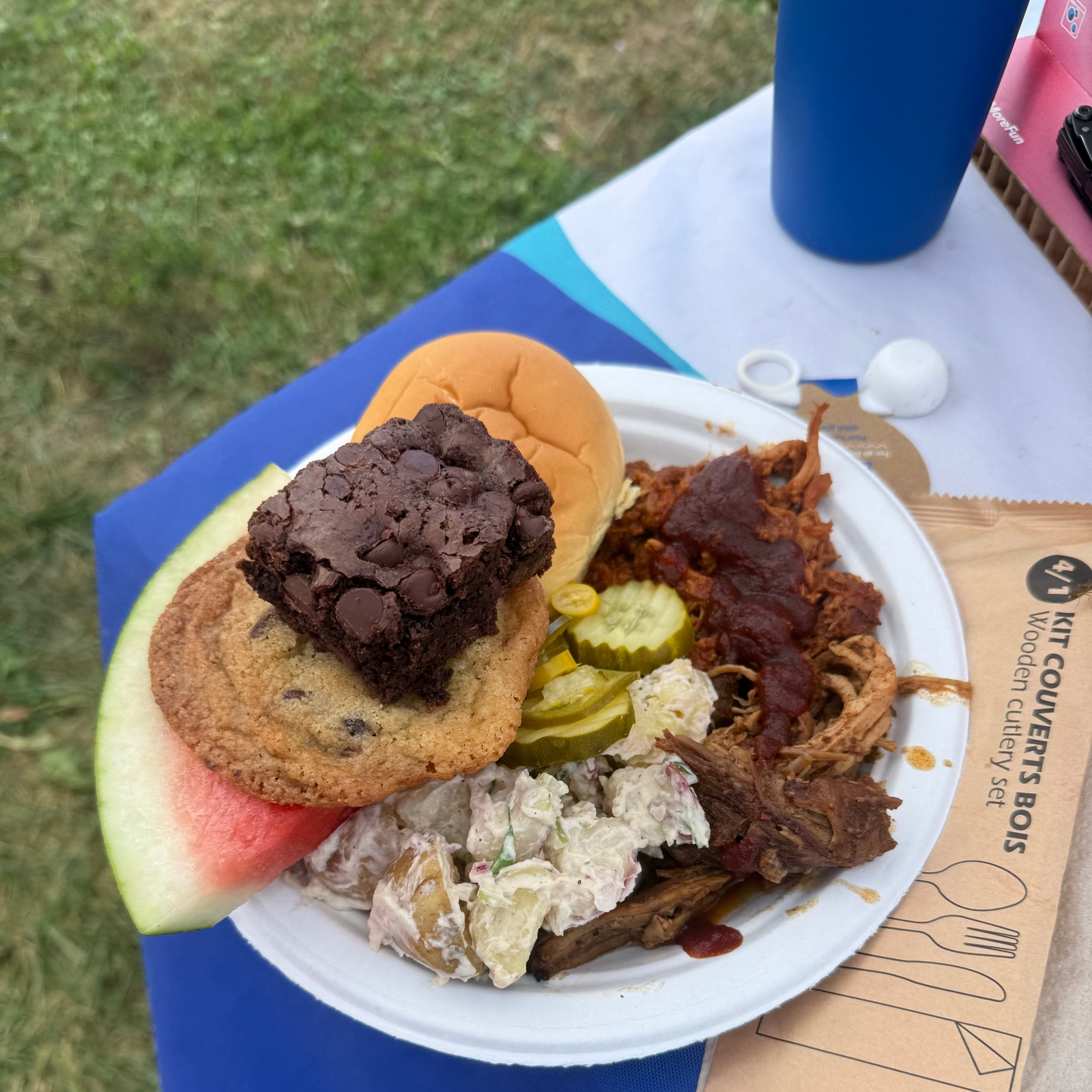 Delicious-smelling BBQ aromas wafted their way around all afternoon as I was at Bivo’s booth and somebody very kindly went and made me a plate and brought it back to the booth for me (thanks, Ken!).